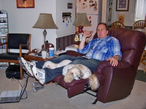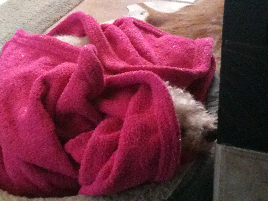 Lacy recovering after her surgery, now no puppies.
